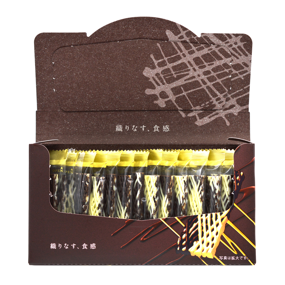 1.5mm의 가느다란 초콜렛 1,350개를 겹쳐서 만든, 아삭한 식감과 사르르 녹는 비타,화이트 2가지 맛 초콜릿을 즐기실 수 있습니다.