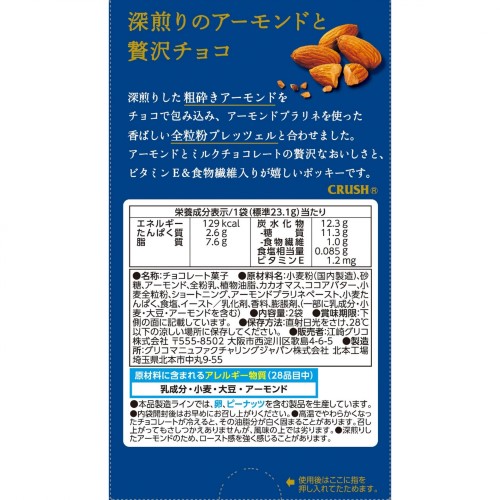 볶은 아몬드를 초콜릿으로 감싸 아몬드 프라리네를 사용한 고소한 프레첼과 어울렸습니다. 아몬드와 초콜릿의 고급스러운 맛과 비타민 E & 식이섬유가 들어간 포키입니다.