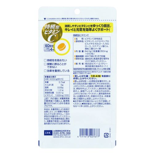 "지속형 비타민 C 소모되기 쉬운 비타민 C를 천천히 방출! 예쁨과 활력을 효과적으로 서포트"