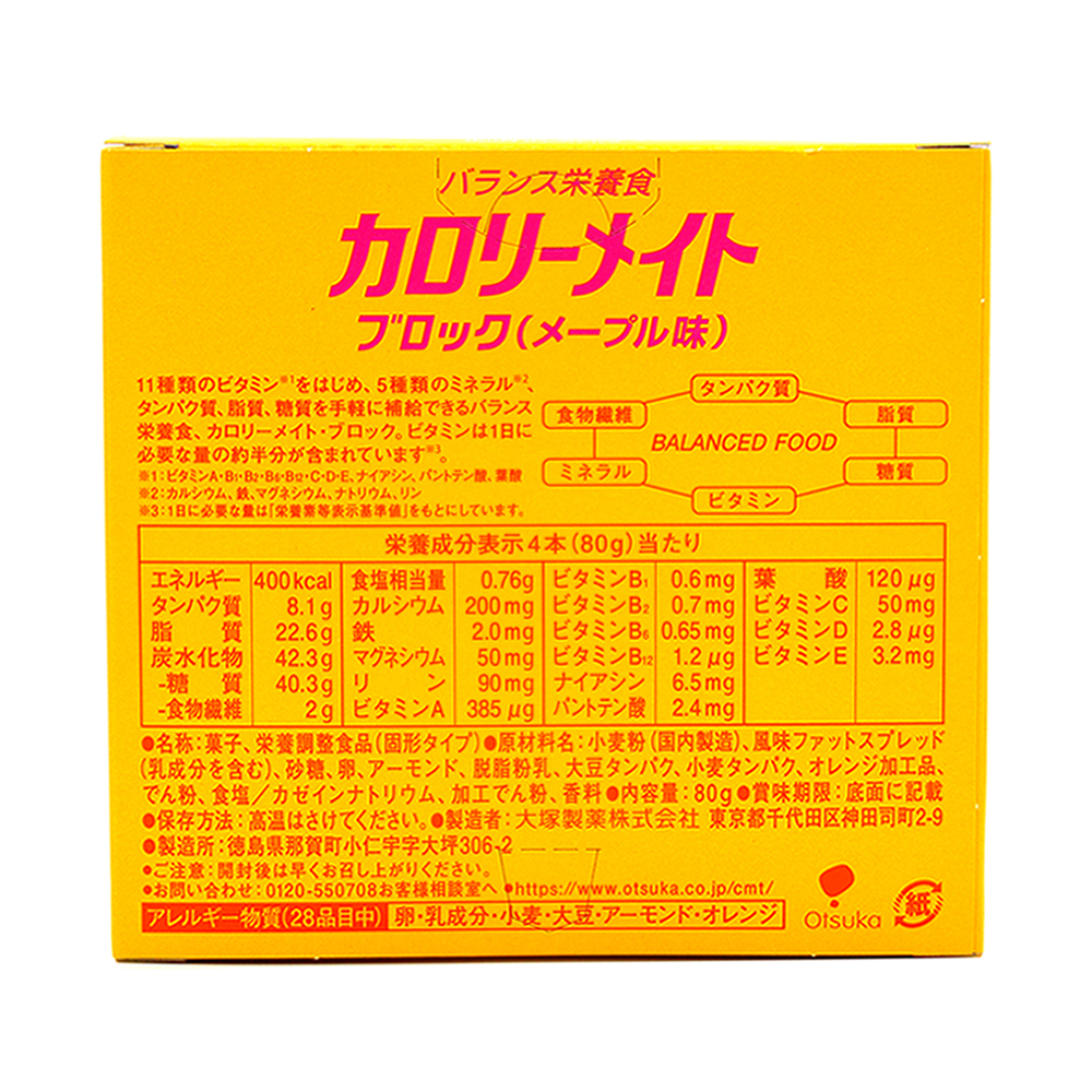 home > 장바구니 베스트템 > (유통기한 2026년 5월 31일까지) 칼로리 메이트 블록 비타민 보충 메이플맛 4개입 80g